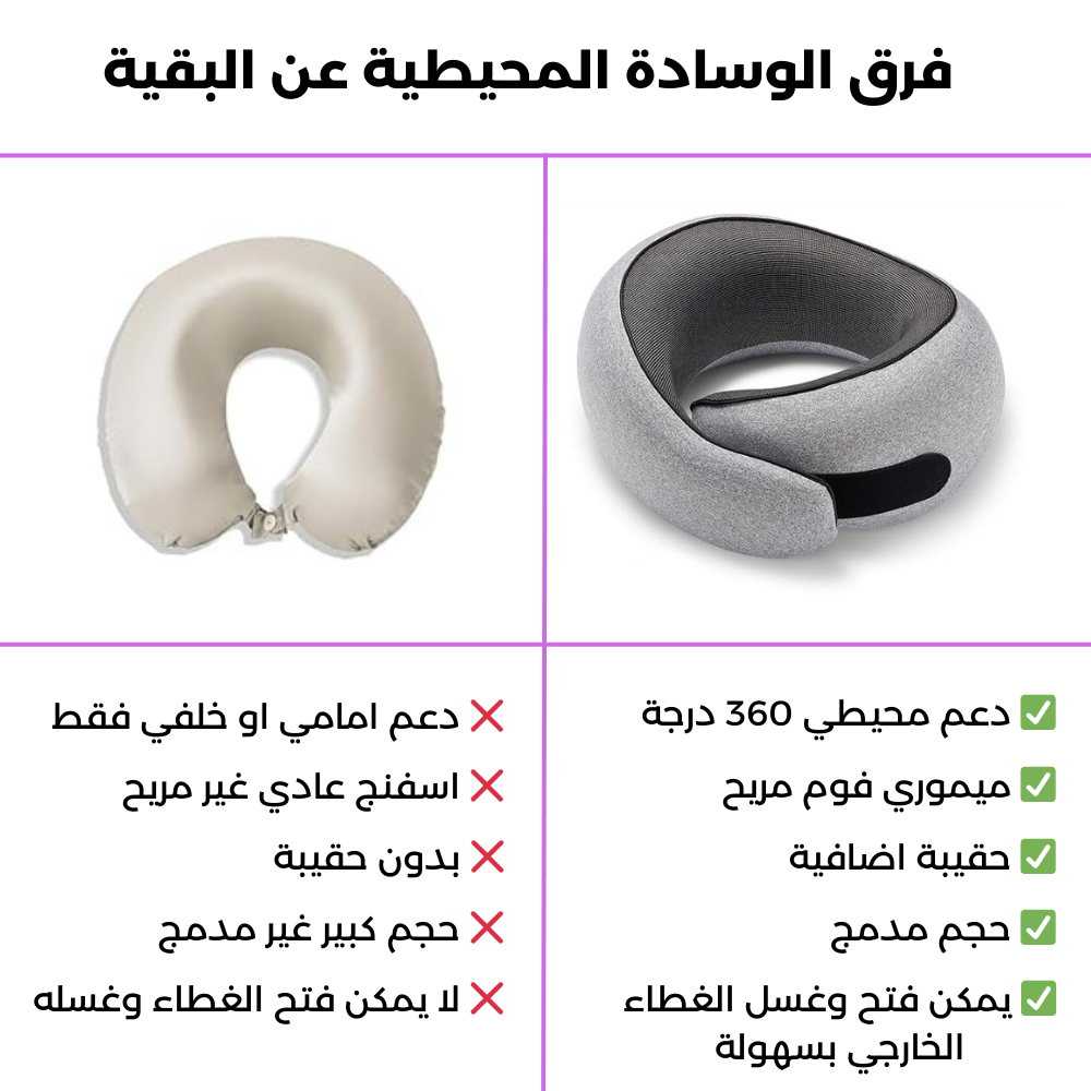 ✨ خصائص الوسادة المحيطية 360 للسفر والعمل ✨