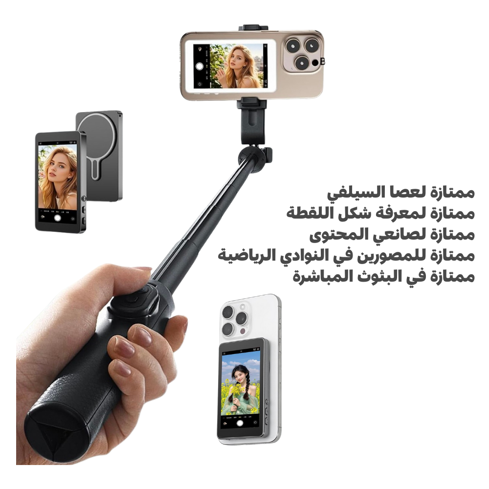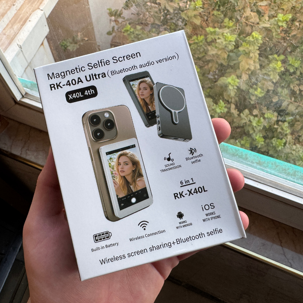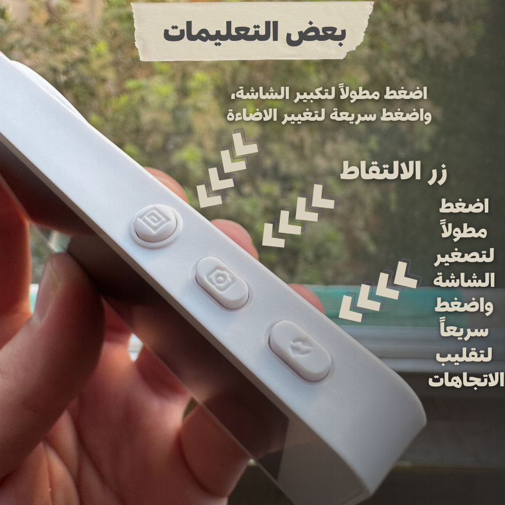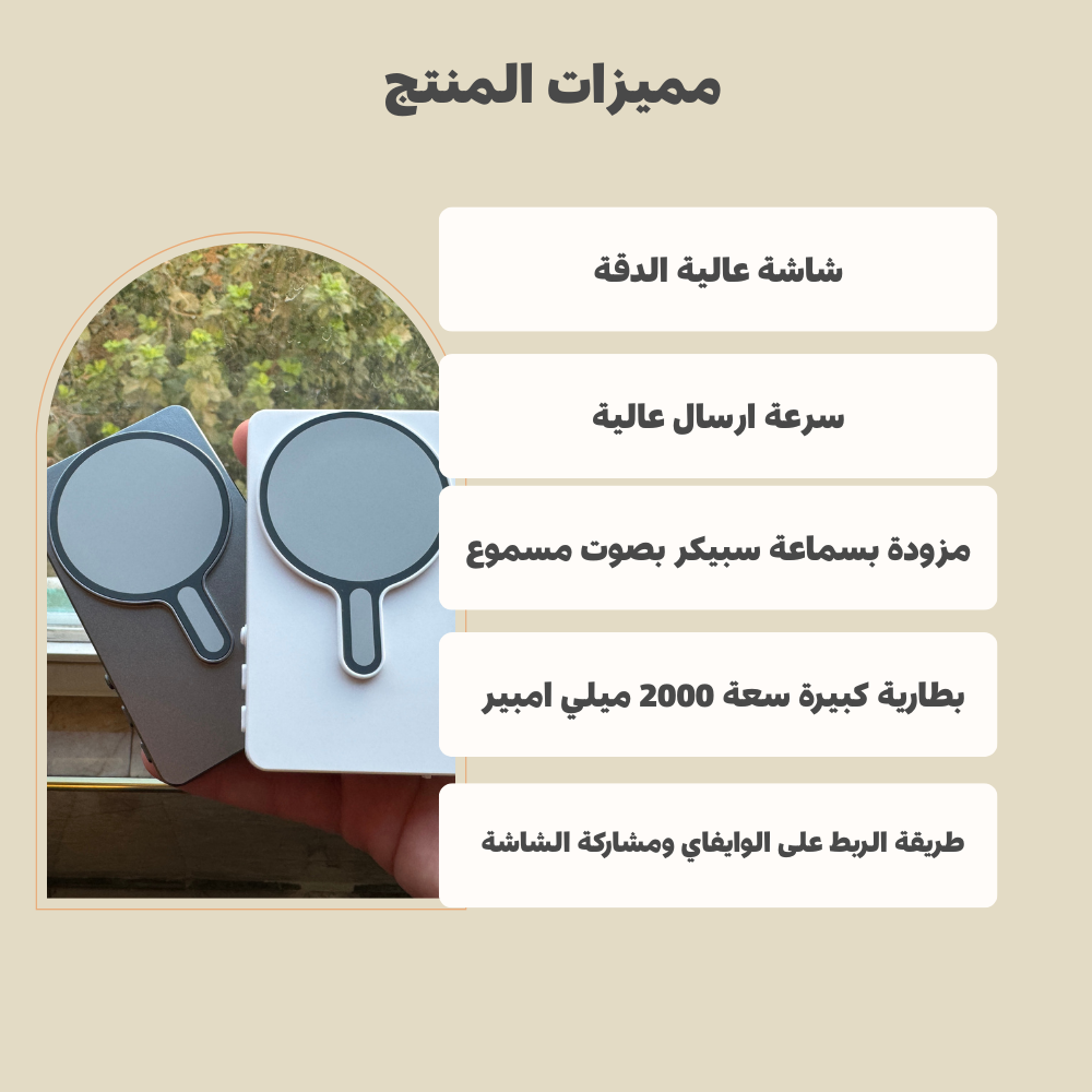 هذي مو مجرد شاشة، هذي مراية رقمية لاسلكية تستنسخ شاشة تلفونك وتخليها قدامك. يعني كأنما عندك تلفزيون صغير يشوفك كلشي يصير بالكاميرات الخلفية وبشاشة الهاتف 🤩