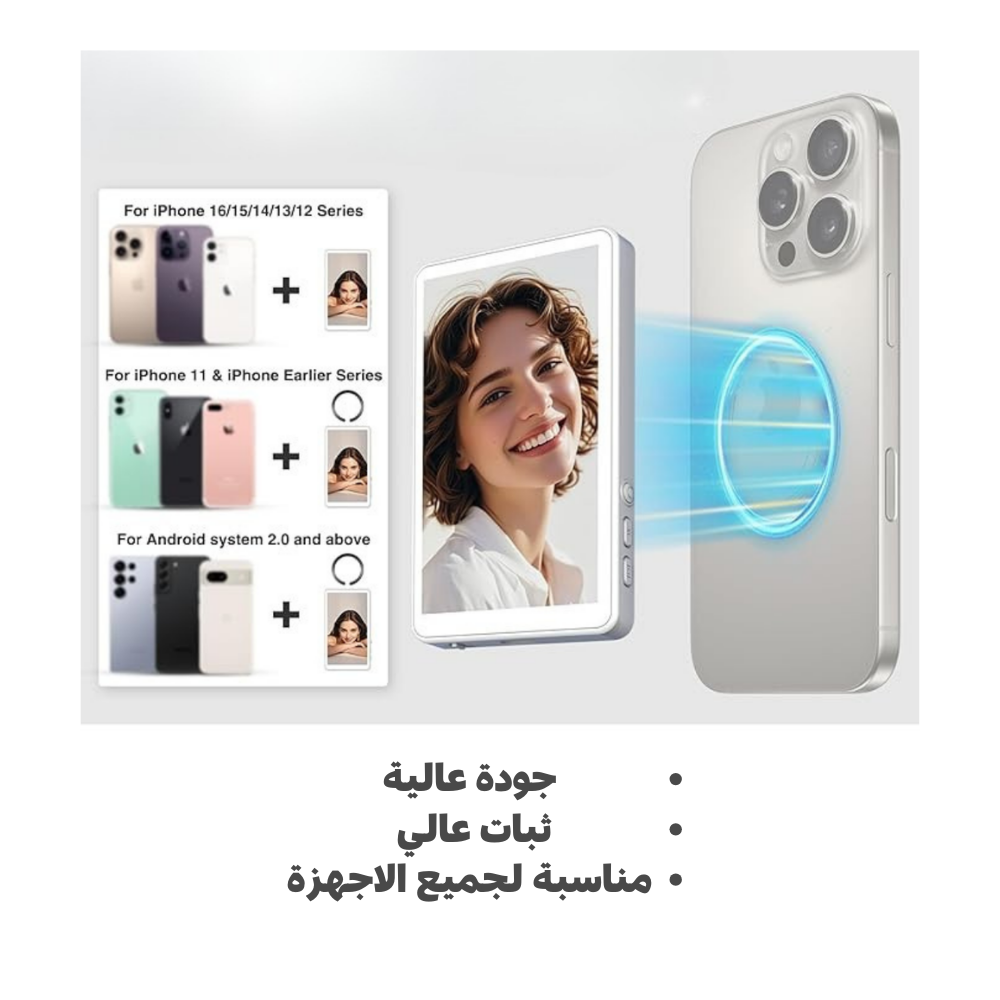 ✅ مغناطيس قوي يلتصق مباشرة بظهر الآيفون ويجي وياها حلقة مغناطيسية خاصة للأندرويد.
